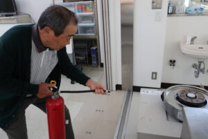 5月7日(水)14:30過ぎから、センターで避難訓練・通報訓練・消火訓練をしました。