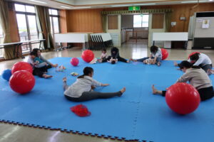 バランスボールは身長に合わせて大きさを調節され、子ども用のバランスボールも用意して下さいました。