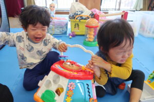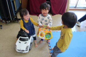 また、おもちゃの取り合いをして泣いているお友だちがいました。