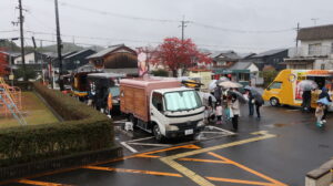 センター前の駐車場では、キッチンカー6台が並び雨の中たくさんの人が買いに来てくれました。