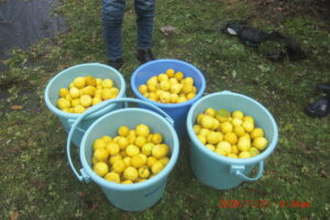 11月24日(月)秋晴れの中、部会員4人で柚子の収穫を行いました。