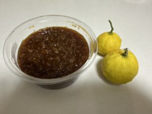 柚子を焦がさないようにゆっくりふつふつとなるまで煮込み美味しい柚子麹味噌ができました。