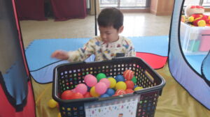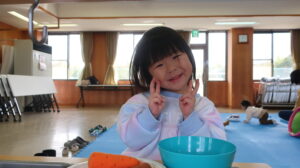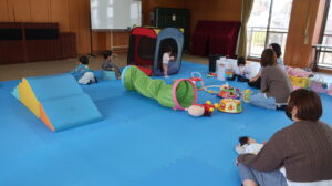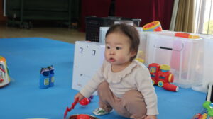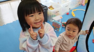午前中は保健師さんが来て下さり身長・体重を測ってくれたり、みんなで一緒に遊びました。