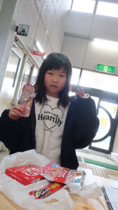 ご寄付いただいたお菓子の袋をしっかり抱いて友達と中味を確かめ合うほほえましい様子があちこちで見られ、スタッフも本当に和みます。