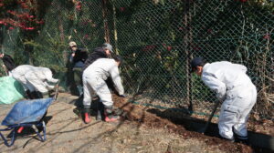 本年度は、1/28(水)・2/4(水)と2班に分かれ、溝掃除&落ち葉拾いをしてとてもきれいにして頂きました。